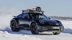 This Porsche 911 Dakar has a rugged off-road design. It is a four-wheel drive with a twin-turbo and an eight-speed automatic gearbox.